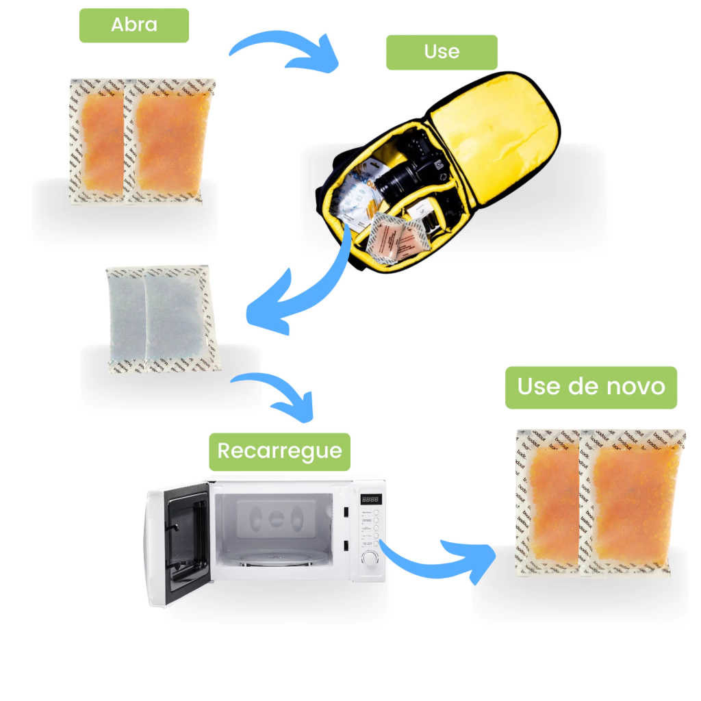 💡 DICA: Use os dois sacos microclima separados ou combine os 4 sachês juntos em locais de alta umidade para proteção reforçada.
